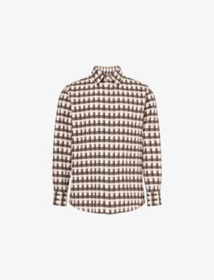 Mens Bottega Veneta Check-Print Relaxed-Fit Cotton-Poplin Shirt