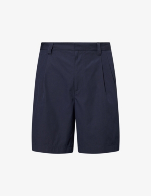Bottega Veneta cotton shorts72% cotton, 20% viscose, 8% polyester; lining 100% cottonConcealed button, hook-and-eye and zip-fly fastening at frontRelaxed fit, mid-rise, wide leg, structured waistband with belt loops, elasticated side waist, two side slip pockets, two rear welt pockets, triangle flap at back, tonal stitchingDry cleanMade in ItalySize UK 32: rise 13in / 33cm, inside leg 8in / 20cm, leg opening 28in / 71cmModel is 6ft 2in/1.88m and wears a size UK 32Lightweight, non-stretch
