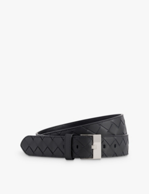 Bottega Veneta leather belt100% calf leatherBuckle fasteningBelt loop, five pockets, double-faced weave, smooth leather and debossed branding at back, silver-toned hardwareSpecialist leather cleanLength: 106cmWidth: 3cmMade in ItalyComes with a dust bag