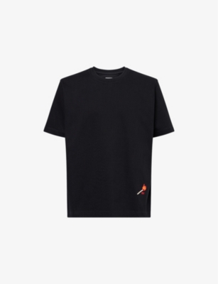 Bottega Veneta cotton-jersey T-shirt100% cotton; embroidery 100% polyester; trims 97% cotton, 3% elastanePulls onRelaxed fit, ribbed crew neck, short sleeves, embroidered at frontHand wash coldMade in ItalyModel is 6ft 2in/1.88m and wears a size mediumLightweight, stretchy