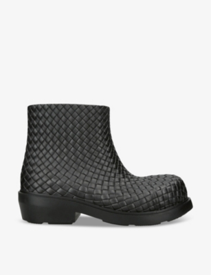 Bottega Veneta rubber ankle boots100% rubberSlips onClosed toe, round toe, ankle length, all-over Intrecciato weaveWipe with a clean, dry clothUpper: 100% rubberLining: 100% leatherSole: 100% rubber