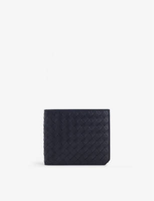 Bottega Veneta leather wallet100% calf leather; lining 100% calf leatherFold overAll-over double-faced weave, two main compartments, two internal slip pockets and 8 card slots, fully linedHeight 11cm, width 9.5cm, depth 1cmSpecialist leather cleanMade in ItalyComes with a dust bag, presented in a box