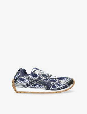 Bottega Veneta mesh and woven trainers100% fabric; 100% meshLace-up fasteningClosed round toe, low-top silhouette, technical upper, metallic panels, mesh covering, ridged soleWipe with a clean, dry clothMade in ItalyUpper: 100% fabric; 100% meshLining: 100% fabricSole: 100% rubber