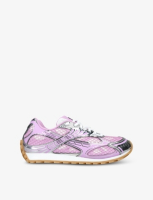 Bottega Veneta woven trainers100% textileLace-up fasteningRound toe, metallic panels, net covering, ridged soleSponge cleanUpper: 100% syntheticLining: 100% textileSole: 100% rubber