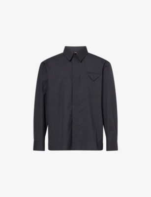 Bottega Veneta wool shirt100% woolConcealed button fastenings at frontSpread collarButtoned cuffsRegular fit, collar, long sleeves, flap pocket at front, V-yoke at back, split at sidesDry cleanMade in ItalySize UK 40: length 28in / 72cm, chest 44in / 112cmModel is 6ft 2in/1.88m and wears a size UK 40Lightweight, slight stretch