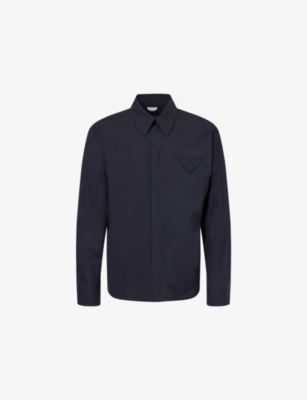 Bottega Veneta wool shirt100% woolConcealed button fastenings at frontSpread collarButtoned cuffsRegular fit, long sleeves, welt pocket at chest, slits at hem sideSpecialist dry cleanMade in ItalySize UK 40: length 29in / 74cm, chest 42in / 107cmModel is 6ft 2in/1.88m and wears a size UK 40Lightweight, non-stretch