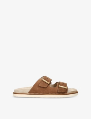 Brunello Cucinelli suede sandals100% suedeBuckle fasteningRound open toe, double buckle straps, branded buckles, contrast soleSpecialist leather cleanMade in ItalyUpper: 100% suedeLining: 100% leatherSole: 100% synthetic