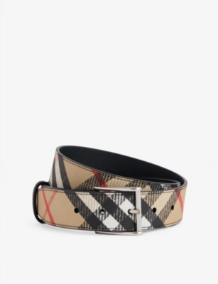 Burberry coated-canvas belt55% polyurethane, 25% polyester, 20% cotton; hardware 100% brass; lining 100% calf leatherBuckle fasteningAdjustable, check pattern, brand text at lining, silver-toned hardwareSpecialist leather cleanWidth: 3.5cm/1.4inMade in Italy