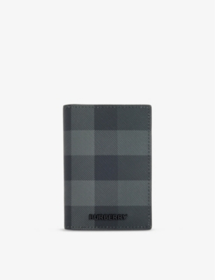 Burberry coated-canvas cardholder70% thermoplastic polyurethane, 30% cotton; trims 100% lamb leatherBi-foldBrand metal script hardware at front, brand text engraving at interior, four card slots, brand check patternHeight 10.5cm, width 7.5cm, depth 1cmWipe with a clean, dry clothComes with a dust bag