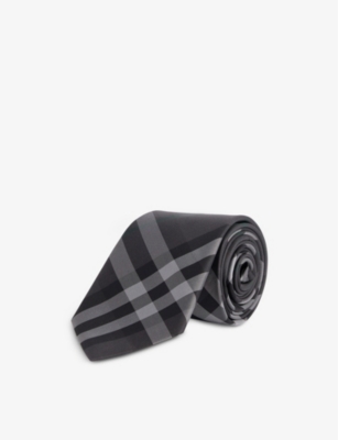 Burberry silk tie100% silkSelf-tie fasteningSlim silhouette, pointed tip, logo embroidered at back, all-over check patternSpecialist dry cleanWidth: 3.5cmMade in Italy