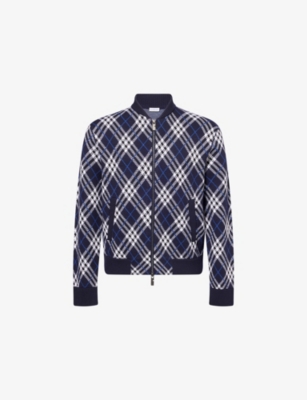 Mens Burberry Check-Weave Knitted Bomber Jacket