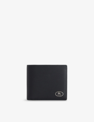 Burberry leather wallet100% calf leather; lining 51% cotton, 49% polyesterSquare shape, Equestrian Knight Design plaque at front, eight card slots, note compartment with divider, two slip pockets, hand-painted edges, embossed branding at interior, grained finishHeight 11cm, width 9.5cmSpecialist leather cleanMade in ItalyPresented in a box
