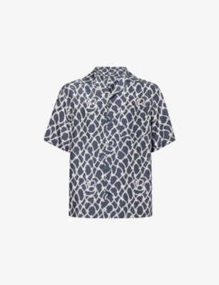 Burberry silk shirt100% mulberry silkExposed button fastenings at frontRegular fit, spread collar, short sleeves, one chest patch pocket, brand signature print, all-over graphic printDry cleanLightweight, non-stretch