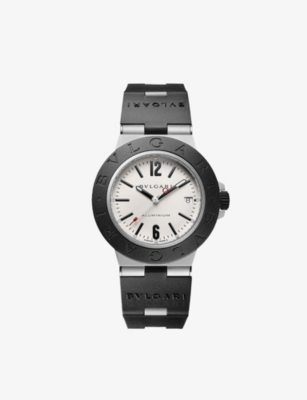 Bvlgari aluminium and titanium watch100% aluminium; 100% titaniumRound case, engraved bezel, mechanical movement with automatic winding, two-tone braceletCase diameter: 40mmWipe with a clean, dry clothWater resistance: 10 bar / 10 atm / 100m / 330ftMade in SwitzerlandBvlgari prides itself on providing excellent customer service. This includes contacting customers to offer after-sales care and share details about its brand and products. As such, when you order a Bulgari product from us, your details will be passed onto Bulgari so that it can provide these services to you