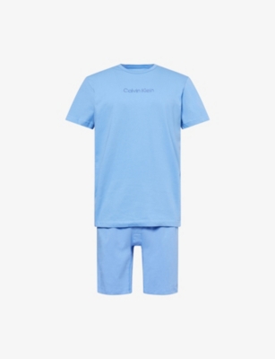 Calvin Klein cotton pyjamas100% cottonShorts: knee length, logo waistband, soft fabricationT-shirt: crewneck, short sleeves, embroidered logo at front, straight hemMachine wash mildModel is 6ft 2in/1.88m and wears a size mediumLightweight, stretchy