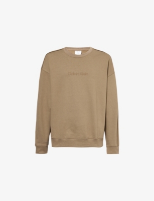 Mens Calvin Klein Logo-Embroidery Crewneck Cotton-Jersey Sweatshirt