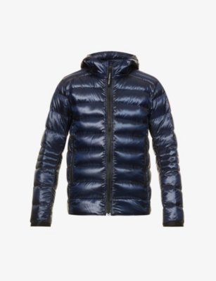 Canada Goose woven jacket100% nylon; padding 90% white duck down, 10% white duck featherExposed zip fasteningRegular fit, drawstring hood, long sleeves, signature embroidered brand patch at chest, elasticated cuffs, two zipped pockets at sides, reflective tape at back hood, all-over quilted, fully padded and lined, elasticated straps at interiorMachine wash coldSize medium: Length 27in / 68cm, chest 42in / 107cmModel is 6ft 1in/1.85m and wears a size mediumLightweight, non-stretch