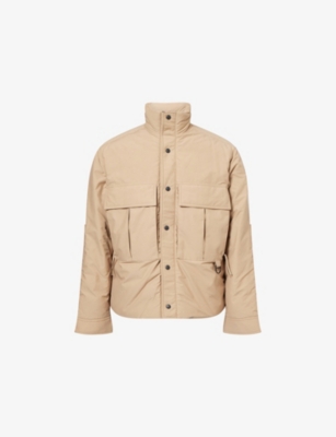 Canada Goose cotton blend jacket57% cotton, 43% polyamide; filling 90% duck down, 10% duck feather; lining 100% polyamideExposed popper fastenings at frontFunnel neck, long sleeves, adjustable cuffs, two flap patch pockets with zipped slip pockets at side, embroidered patch at sleeves, lightly padded, branded hardwareMachine wash at 30°CMade in CanadaSize medium: length 28.3in / 72cm, chest 44.8in / 114cmModel is 6ft 2in/1.88m and wears a size mediumLightweight, non-stretch