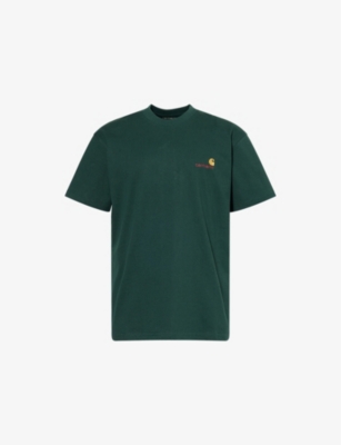 Carhartt WIP cotton T-shirt100% cottonPulls onRelaxed fit, crew neck, short sleeves, text print at front, straight hemMachine wash mildModel is 6ft 2in/1.88m and wears a size mediumLightweight, non-stretch