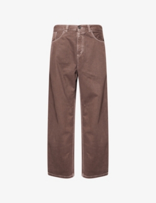 Carhartt WIP denim jeans100% cotton; pocketlining 100% cottonExposed button and concealed zip-fly fastening at frontRelaxed fit, high-rise, wide leg, belt loops, five pockets, brand patch at backMachine wash at 40°CMade in TunisiaSize medium: rise 15in / 39cm, inside leg 29in / 75cm, leg opening 18in / 46cmModel is 6ft 2in/1.88m and wears a size mediumLightweight, slight stretch
