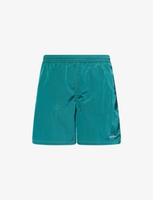 Carhartt WIP swim shorts100% nylon; lining 100% polyesterRegular fit, mid-rise, drawstring elasticated waistband, two slip pockets and brand embroidery at front, zip pocket and brand patch at back, partially linedMachine wash at 30°CModel is 6ft 3in/1.91m and wears a size mediumLightweight, non-stretchFor hygiene reasons, we are unable to exchange or refund this product, unless faulty.