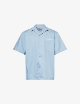 Carhartt WIP woven shirt60% TENCEL™, 40% cottonExposed button fastening at frontRelaxed fit, camp collar, short sleeves, logo embroidery at chest, straight hemMachine wash at 30°CModel is 6ft 2in/1.88m and wears a size mediumMidweight, non-stretch