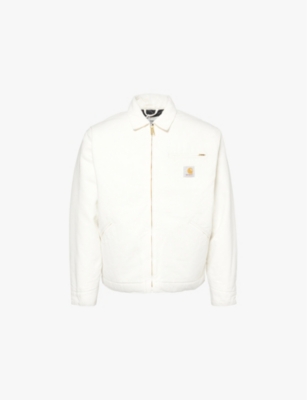 Carhartt WIP organic-cotton jacket100% organic cotton; filling 100% polyester; lining 100% polyester; pocketlining 65% polyester, 35% cottonConcealed zip fastening at frontRegular fit, corduroy spread collar, long sleeves, buttoned cuffs, zip pocket and two jetted pockets at front, brand patch at front, buttoned epaulettes at back, all-over canvas texture, all-over padded, fully linedDry cleanMade in TunisiaSize medium: length 26in / 67cm, chest 48in / 122cmModel is 6ft 2in/1.88m and wears a size mediumHeavyweight, non-stretch