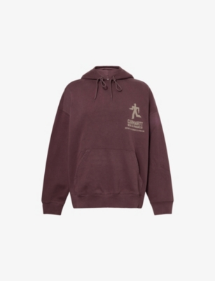 Carhartt WIP cotton-jersey hoodie100% cotton; trims 96% cotton, 4% elastaneRelaxed fit, drawstring hood, dropped shoulders, long sleeves, kangaroo pocket and brand print at front, brand and text print at back, brushed interior, ribbed trimsMachine wash at 30°CModel is 6ft 2in/1.88m and wears a size mediumMidweight, stretchy