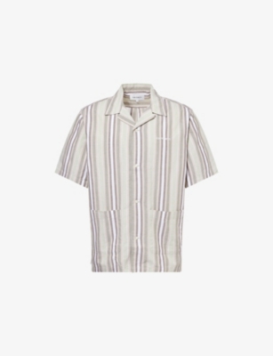 Carhartt WIP cotton shirt100% cottonButton fasteningRegular fit, spread collar, short sleeves, patch pocket with brand embroidery at front, stripedMachine wash mildModel is 6ft 2in/1.88m and wears a size mediumMidweight, non-stretch