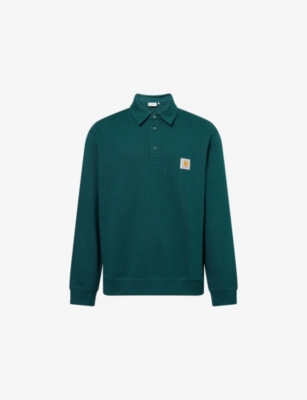 Carhartt WIP cotton polo sweatshirt100% cottonButton fastening at front Loose fit, classic collar, long sleeves, embroidered logo patch at front, ribbed trimsModel is 6ft 2in/1.88m and wears a size mediumLightweight, non-stretch