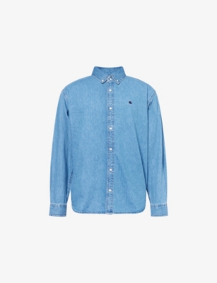 Carhartt WIP Denim Shirt100% cottonButton fasteningLoose fit, pointed collar, dropped shoulder, long sleeves, button cuffs, embroidery at chest, curved hemMachine wash mildSize medium: length 32in / 81cm, chest 52in / 132cmModel is 6ft 2in/1.88m and wears a size mediumMidweight, slight stretch