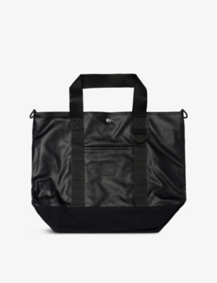 Carhartt WIP faux-leather tote bag69% polyurethane, 31% viscoseSnap fasteningAdjustable detachable strap, pocket at exterior, one main compartment, zipped pocket at interiorHeight 37cm, width 48cm, depth 17.5cmWipe with a clean, dry cloth