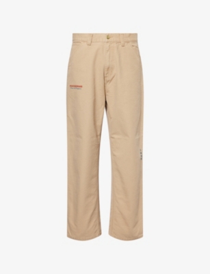 Carhartt WIP denim jeans100% cottonButton and button-fly fasteningRelaxed fit, straight leg, belt loops, side pockets, back patch pockets, patch pockets on leg, brand patch on leg, light wash, graphic text print at front and backMachine wash mildSize UK 30: rise 13in / 33cm, inside leg 31in / 78cm, leg opening 16in / 40cmModel is 6ft 2in/1.88m and wears a size UK 30Midweight, non-stretch