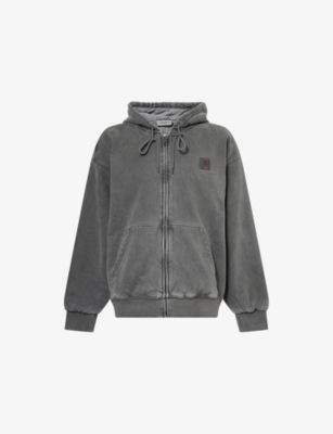 CARHARTT WIP cotton jacket100% cottonZip fasteningRelaxed fit, drawstring hood, dropped shoulders, long sleeves, logo print at front, patch pocket, ribbed trimsMachine wash mildModel is 6ft 2in/1.88m and wears a size mediumMidweight, non-stretch