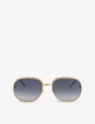 Casablanca acetate sunglasses100% acetate; hardware 100% stainless steelStyle number: EW-048-06WFrame shape: square100% UV protection, interlocked gold-plated monogram at temples, gradient lensWipe with a clean, dry clothComes with pouch and cloth