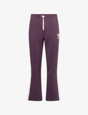 Casablanca cotton jogging bottoms100% cottonRelaxed fit, straight leg, drawstring elasticated waistband, logo patch and pressed creases at front, applique at sides, patch pocket at backMachine wash at 30°CMade in PortugalModel is 6ft 2in/1.88m and wears a size mediumMidweight, slight stretch