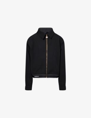 Casablanca Woven Sports Jacket56% polyester, 44% woolZip fasteningTailored fit, short design, point collar, elasticated tape hem with Casablanca logo and stripe detail, long sleeves, fully linedDry cleanModel is 6ft 2in/1.88m and wears a size mediumMidweight, non-stretch