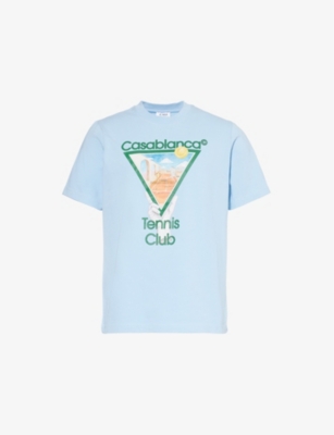 Casablanca organic-cotton jersey T-shirt100% organic cottonPulls onRegular fit, crewneck, short sleeves, graphic print at frontMachine wash at 30°CMade in PortugalModel is 6ft 2in/1.88m and wears a size mediumLightweight, slight stretch
