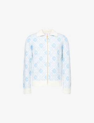 Casablanca knit cardigan36% polyamide, 25% cotton, 20% wool, 19% mohair woolConcealed zip fastening at frontRelaxed fit, polo collar, long sleeves, all-over monogram pattern, ribbed trimsHand washModel is 6ft 2in/1.88m and wears a size mediumMidweight, slight stretch