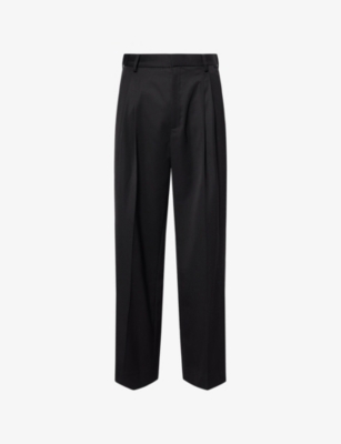 Casablanca wool trousers100% virgin woolButton, hook-and-eye and zip-fly fasteningRegular fit, mid-rise, straight leg, structured waistband with belt loops, slip pockets at front, pockets at back, pleat legDry clean onlyModel is 6ft 2in/1.88m and wears a size UK 32Lightweight, non-stretch