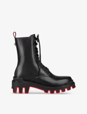 100% leatherMade in ItalyTrue to sizeProduct care – The red lacquer of the soles wears out with use. This is not a manufacturing defect; it is simply normal wear and tear. Christian Louboutin strongly recommends that its customers consult a professional in leather care or a shoemaker for specific care advice. In order to keep your shoes in good condition, the following leather care is recommended:Keep the leather area clean and dry using a dry, soft clothAlways store your products away from light and heatProtect your leather goods from rain and moistureStore your products in the Christian Louboutin dust bag providedAvoid contact with abrasive surfacesRegrettably we are unable to accept in-store returns on Christian Louboutin ordersPLEASE NOTE: Due to the delicate nature of the red soles we ask that the shoes be tried on carpeted flooring. If not, they may not be suitable for return
