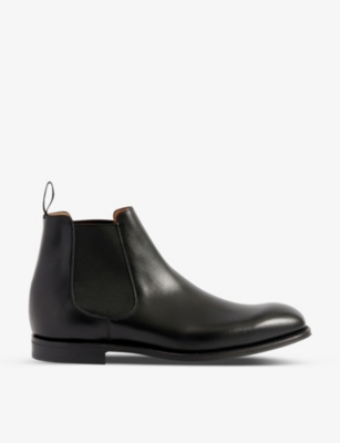 It’s no surprise that Church’s is the universal go-to for long-wearing, high-quality footwear that never disappoints on style either. Founded in 1873 in the English town of Northampton, known for a thriving leather and footwear industry for centuries, the brand relies on its heritage and expertise when crafting classic silhouettes like the Amberley Chelsea boots. Crafted from polished calf leather, the sporting background of what used to be a riding shoe is revealed in the traditional elasticated side panels.Church’s leather Chelsea boots100% calf leatherPulls onRound closed toe, ankle rise, polished finish, pull tab at the heel, elasticated side panels, low stacked heelSpecialist leather cleanMade in EnglandUpper: 100% calf leatherLining: 100% calf leatherSole: 100% rubber