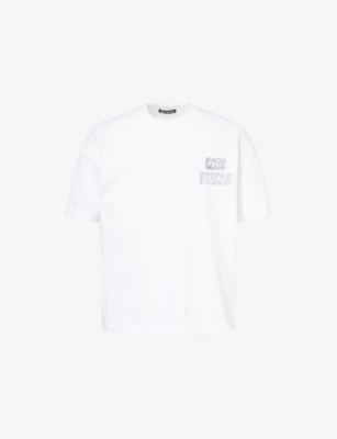 Cole Buxton cotton t-shirt100% cottonRelaxed fit, crewneck, dropped shoulders, short sleeves, graphic print at chest and across backMachine wash at 30°CMade in PortugalModel is 6ft 2in/1.88m and wears a size mediumLightweight, stretchy
