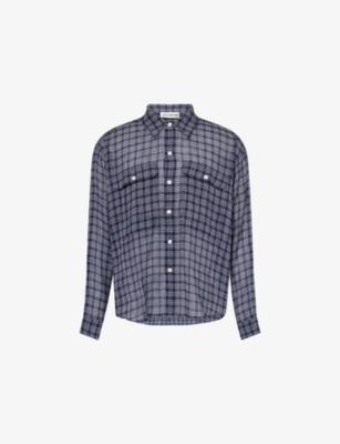 Cole Buxton linen-blend shirt54% lyocell, 46% linenExposed button fastening at frontClassic collar, long sleeves, two flap patch pockets at front with button fastening, all-over check pattern, crinkle texture, curved hemMachine wash coldSize medium: length 30.3in / 77cm, chest 55.1in / 140cmModel is 6ft 2in/1.88m and wears a size mediumLightweight, non-stretch