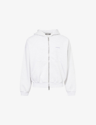 Cole Buxton cotton-jersey hoodie100% cottonExposed zip fastening at frontRelaxed fit, hood, long sleeves, brand print and two patch pockets at front, all-over melange print, brushed interior, ribbed trimsMachine wash at 30°CMade in PortugalModel is 6ft 2in/1.88m and wears a size mediumMidweight, stretchy
