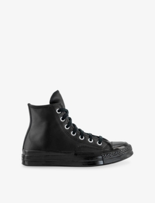 Converse leather trainers100% leatherLace-up fasteningRound contrast toe, hi-top, branding at the backSpecialist leather cleanUpper: 100% leatherLining: 100% fabricSole: 100% rubber