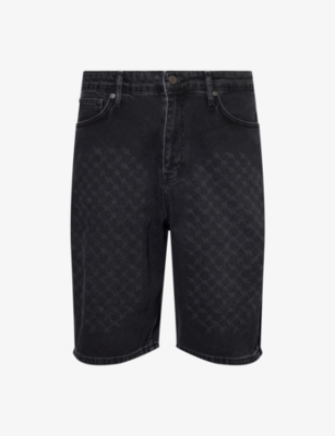 Daily Paper denim shorts100% cottonExposed button and concealed zip-fly fastening at frontRegular fit, mid rise, straight leg, structured waistband with belt loops, five pockets, silver-toned branded hardware, brand patch at back, all-over monogram patternMachine wash at 30°CMade in TurkeySize medium: rise 12in / 30.5cm, inside leg 12in / 30.5cm, leg opening 24in / 61cmModel is 5ft 10in/1.78m and wears a size mediumMidweight, non-stretch