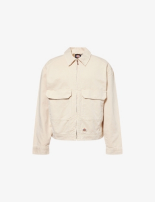 Dickies cotton-canvas jacket100% cottonExposed zip fastening at frontBoxy fit, classic collar, long sleeves, buttoned cuffs, flap pockets and logo patch at front, side slip pockets, adjustable tabs at hemMachine wash at 30°CSize medium: length 26.5in / 68cm, chest 48in / 122cmModel is 6ft 2in/1.88m and wears a size mediumMidweight, non-stretch