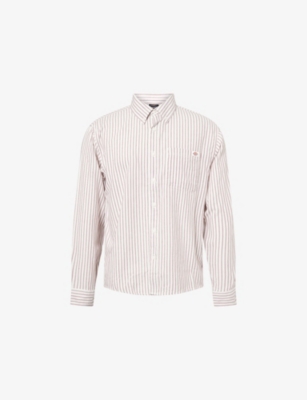 Dickies cotton shirt100% cottonButton fastening at front Pointed buttoned collar, long sleeves, buttoned cuffs, one patch pocket at chest, embroidered logo patch at front, all-over striped patternMachine wash coldSize medium: length 29.9in / 76cm, chest 45.2in / 115cmModel is 6ft 2in/1.88m and wears a size mediumLightweight, non-stretch