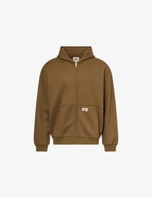 Dickies cotton-blend hoody77% cotton, 23% polyesterZip fasteningRelaxed fit, hooded, dropped shoulders, long sleeves, front patch pockets, front label, ribbed trimsMachine wash mildModel is 6ft 2in/1.88m and wears a size mediumMidweight, slight stretch